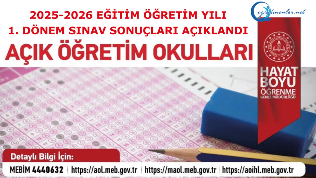 Açık Öğretim Okullarının 2025-2026 Eğitim Öğretim Yılı 1. Dönem Sınav Sonuçları Açıklandı. Sınav sonuçlarını