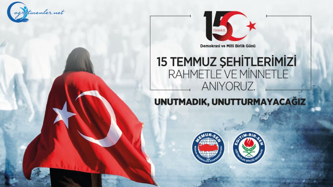 Eğitim-Bir-Sen ve Memur-Sen olarak, istiklâl ve istikbalimizin açık bir saldırıya uğradığı o gece, hiç tereddüt etmeden, sağımıza solumuza bakmadan, birilerini beklemeden, bahane ve gerekçe üretmeden, başka hiçbir hesap yapmadan alanlara; milletimiz için, onurumuz, irademiz, özgürlüğümüz, çalışma hayatının geleceği, güvencesi için, ülkemiz kadar geniş yüreklerimiz ve çıplak ellerimizle karanlığın ve tankların karşısına çıktık. Her zamanki gibi milletten yana, zalimlere karşı olduk.