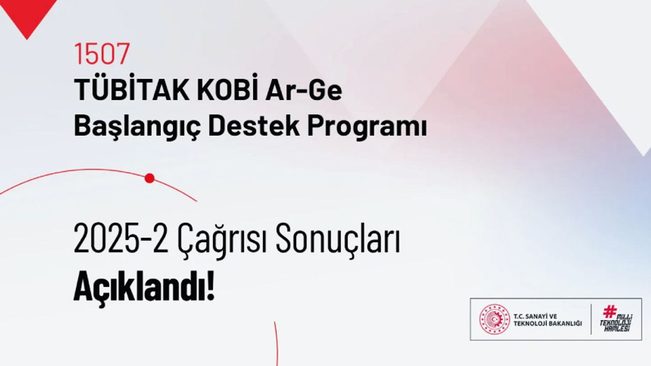 Küçük ve Orta Büyüklükteki İşletmeler (KOBİ) ölçeğindeki kuruluşların proje esaslı araştırma teknoloji geliştirme ve yenilikçilik faaliyetlerinin desteklenmesi, Ar-Ge nitelikli yenilik faaliyetleri yapmaya özendirilmesi, Ar-Ge ve yenilikçilik kültürünün yerleşmesine ve yaygınlaşmasına katkıda bulunulması, ulusal/uluslararası pazarda rekabet güçlerinin artırılması, ortak ya da tek başına sistematik Ar-Ge ve yenilik projeleri yapabilme yetkinliği kazanmasını amaçlayan 1507 KOBİ Ar-Ge Başlangıç Destek Programı 2025-2 Çağrısının sonuçları açıklanmıştır.