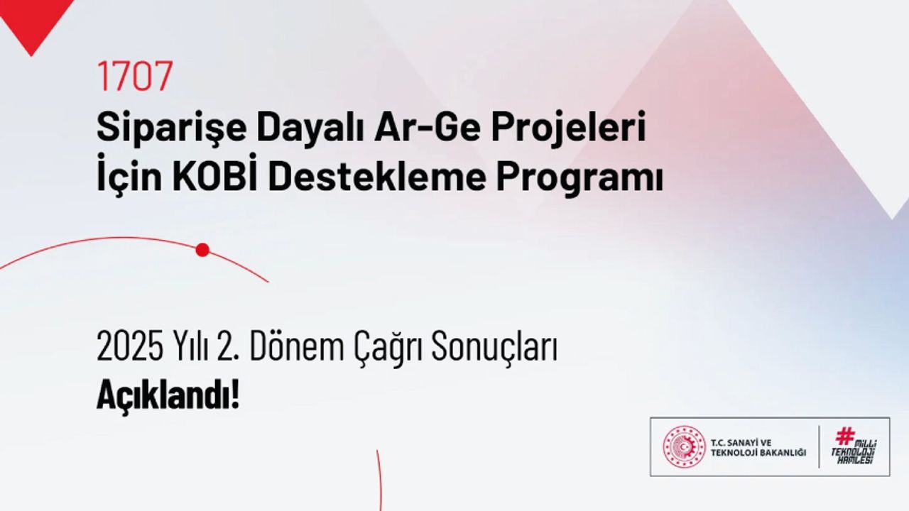 Müşteri kuruluşun gereksinimlerini karşılamak üzere tasarlanan çözüm önerilerinin, KOBİ'ler tarafından Ar-Ge faaliyetlerine dönüştürülerek ticarileşebilir çıktılara ulaşılmasını hedefleyen 1707 Siparişe Dayalı Ar-Ge Projeleri İçin KOBİ Destekleme Programı 2025 Yılı 2. Dönem sonuçları açıklanmıştır.
