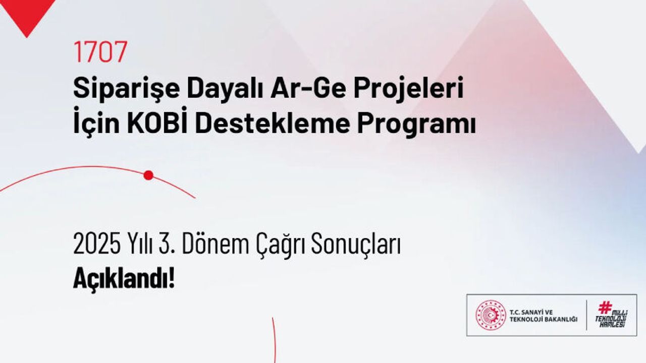1707 Siparişe Dayalı Ar-Ge Projeleri İçin KOBİ Destekleme Programı 2025 yılı 3. dönem çağrı sonuçları açıklandı.