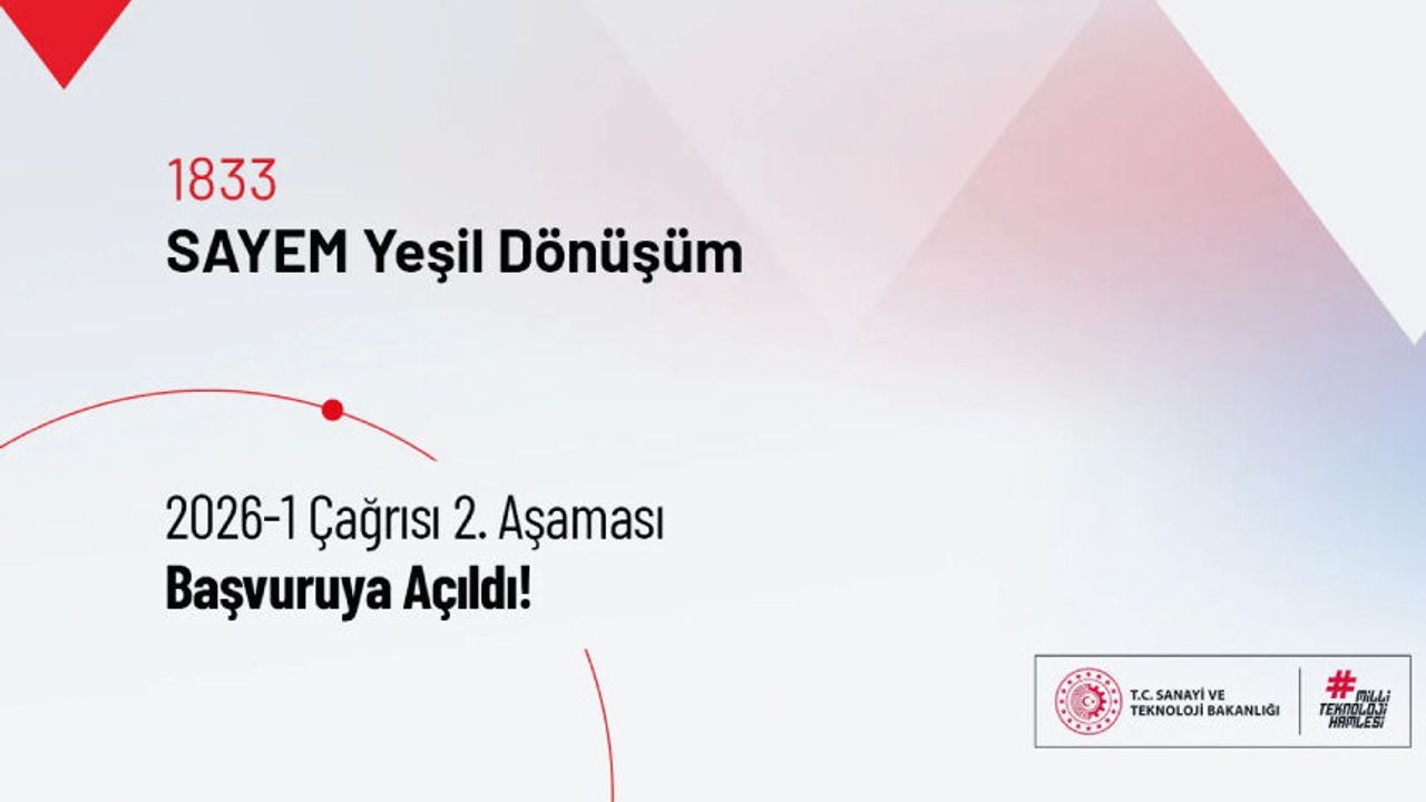 1833 SAYEM Yeşil Dönüşüm 2026-1 Çağrısı’nın ikinci aşaması başvuruya açılmış olup başvuru süreci ve koşullarında önemli güncellemeler yapılmıştır.