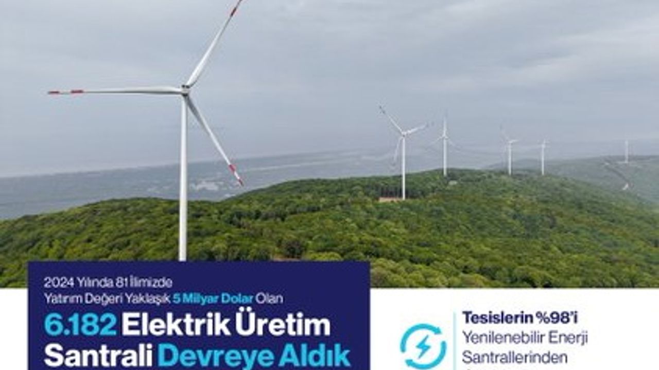 2024 yılında 81 ilde toplam 6 bin 182 elektrik üretim santrali devreye alınmıştır.