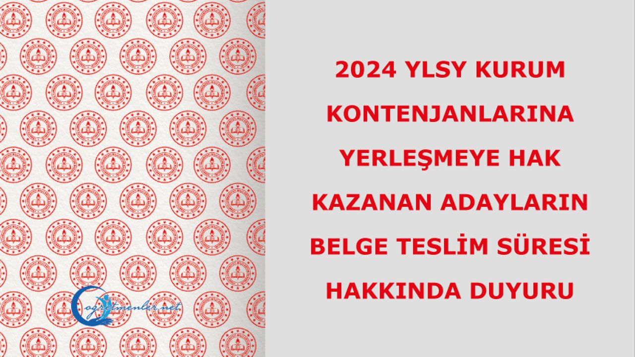 Kontenjanlara yerleşmeye hak kazanan adayların belgelerini en geç 16 Mayıs 2025 saat 17.00'ye kadar "T.C. Millî Eğitim Bakanlığı Yükseköğretim ve Yurt Dışı Eğitim Genel Müdürlüğü, Emniyet Mah. Milas Sok. No:21 Yenimahalle/ANKARA 06560" adresine eksiksiz olarak ulaştırması gerekmektedir. Adaylara duyurulur.