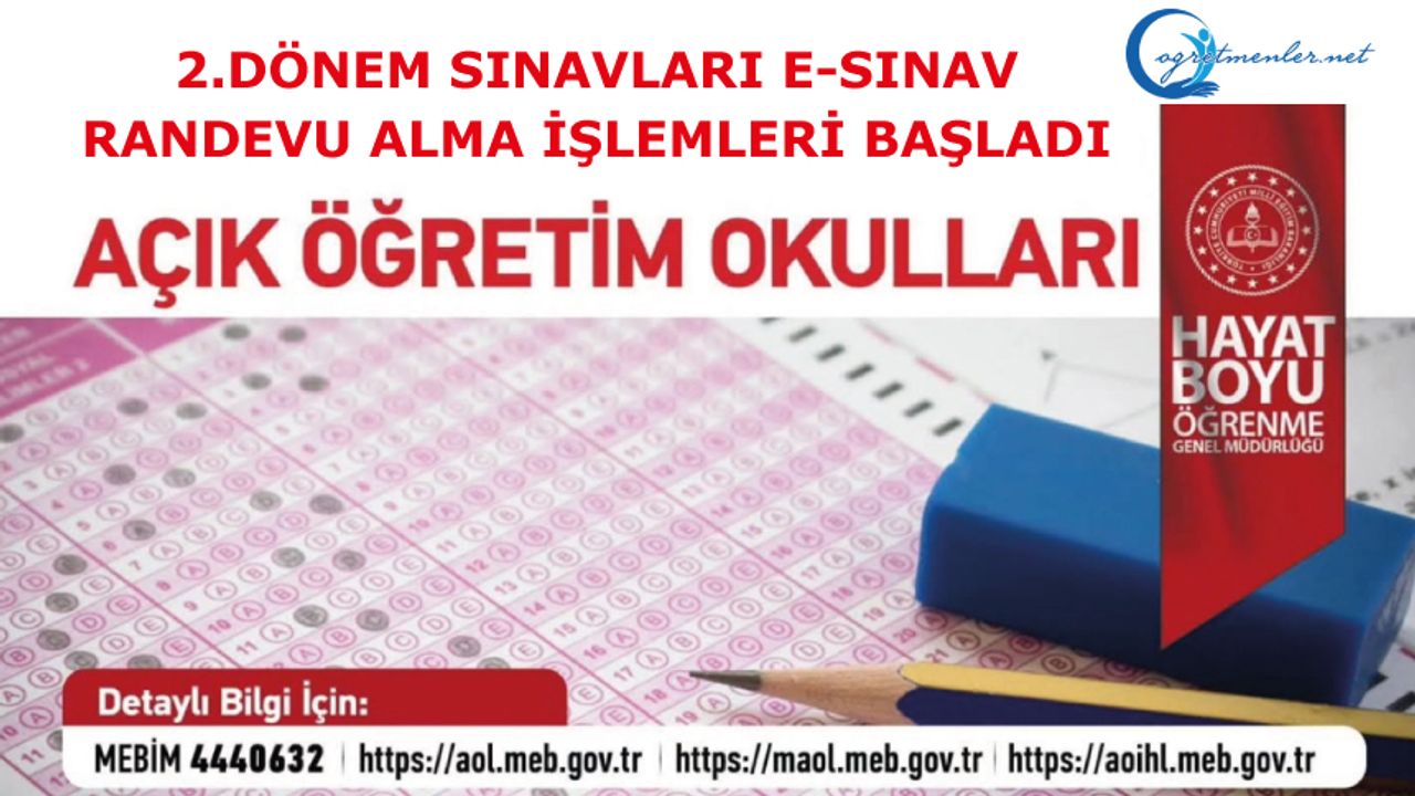 AÇIK ÖĞRETİM LİSESİ 2025-2026 EĞİTİM ÖĞRETİM YILI 2. DÖNEM e-SINAV RANDEVU ALMA İŞLEMLERİ BAŞLADI.