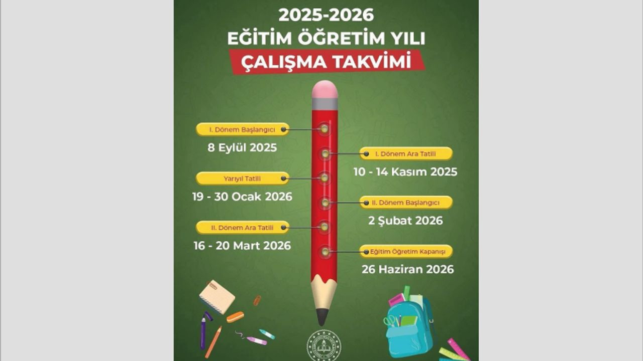 Millî Eğitim Bakanı Yusuf Tekin imzasıyla yayımlanan "2025-2026 Eğitim ve Öğretim Yılı Çalışma Takvimi" konulu genelge tüm illere gönderildi.