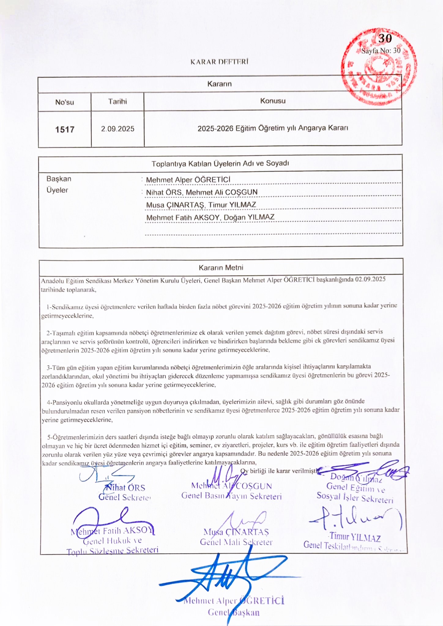 5. Öğretmenlerimizin ders saatleri dışında isteğe bağlı olmayıp zorunlu olarak katılım sağlayacakları, gönüllülük esasına bağlı olmayan ve hiç bir ücret ödenmeden hizmet içi eğitim, seminer, ev ziyaretleri, projeler, kurs vb. ile eğitim öğretim faaliyetleri dışında zorunlu olarak verilen yüz yüze veya çevrimiçi görevler angarya kapsamındadır. Bu nedenle 2025-2026 eğitim öğretim yılı sonuna kadar sendikamız üyesi öğretmenlerin angarya faaliyetlerine katılmayacaklarına,