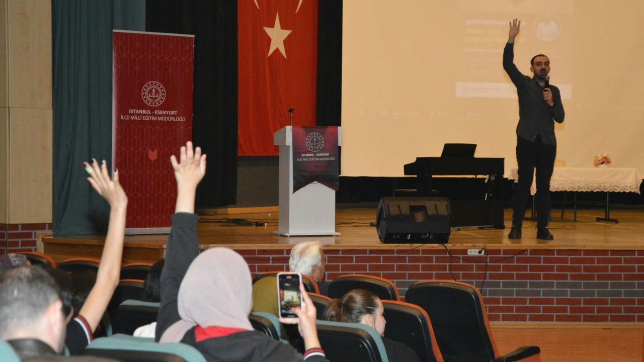 İstanbul Esenyurt proje okulumuz Abdulkadir Aksu Anadolu Lisesi, 2025 yılının Avrupa Dijital Vatandaşlık Eğitimi Yılı olarak kutlanması kararına istinaden hazırladığı programda lise öğrencilerine yönelik bir seminer düzenledi. Yapay zekâ uygulamalarının eğitim alanındaki yeri ve güvenlik önlemlerine değinen uzman konuğumuz MEF Üniversitesi Öğrenme ve Öğretme Birimi koordinatörü Dr. Paker Doğu ÖZDEMİR ile 450 öğrenci ve öğretmenleri buluştu.