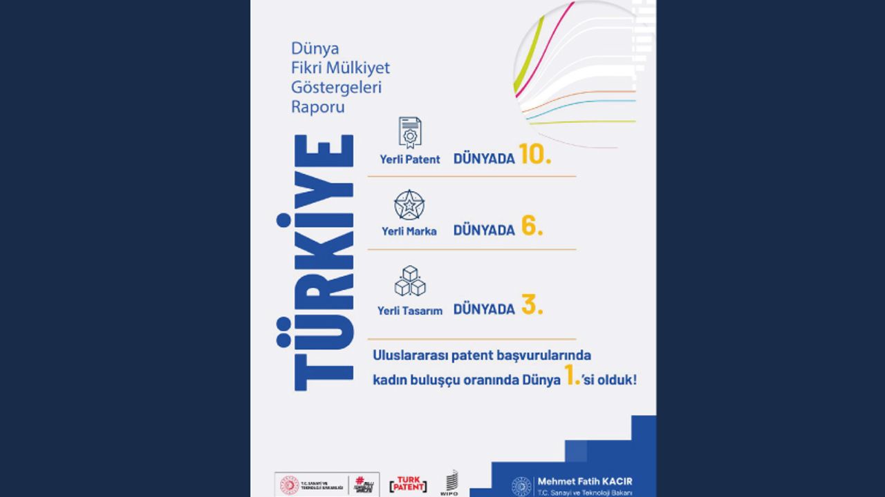Türkiye, fikrî mülkiyette küresel ligde yeni bir başarıya imza attı. WIPO’nun 2025 Dünya Fikrî Mülkiyet Göstergeleri Raporu; patentten tasarıma, markadan kadın buluşçulara kadar pek çok alanda ülkemizin yükselişini açıkça ortaya koyuyor: Yerli patent başvurularında dünyada 10. ülkeyiz. Yerli patent artış hızında dünyanın en hızlı yükselen ilk üç ülkesi arasındayız. Uluslararası patent başvurularında, kadın buluşçu oranında %26,1 ile dünya lideriyiz. Yerli marka başvurularında dünya 6’ncısıyız. Yerli tasarım başvurularında dünya 3’üncüsüyüz. Bu tablo; araştırmacılarımızın, mühendislerimizin, girişimcilerimizin ve özellikle kadınlarımızın teknoloji ve inovasyon alanında ortaya koyduğu büyük emeğin güçlü bir yansımasıdır. Türkiye, fikrî mülkiyette de küresel rekabette yoluna kararlılıkla devam ediyor.