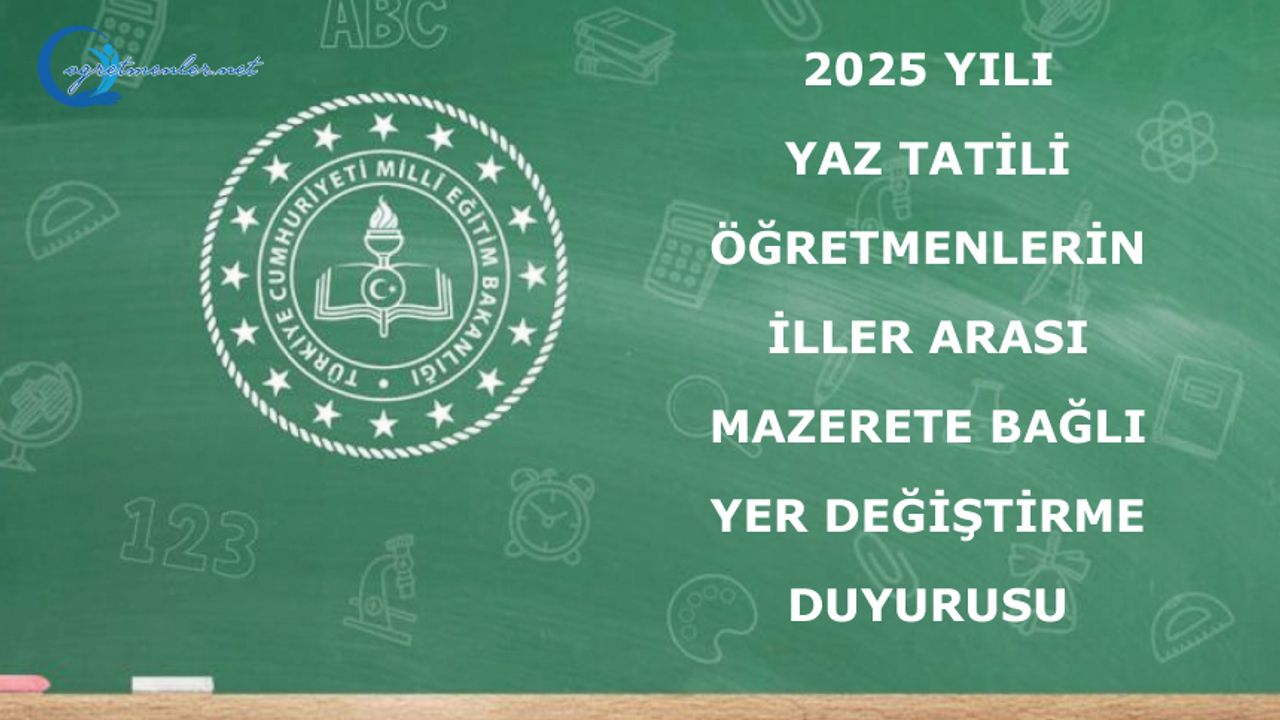 2025 yılı yaz tatili öğretmenlerin iller arası mazerete bağlı yer değiştirme işlemlerine ilişkin duyuru yayımlandı.