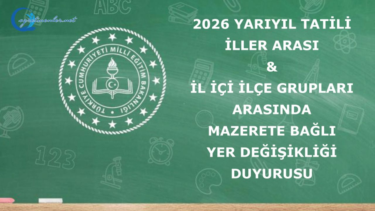 2026 Yılı Yarıyıl Tatili İller Arası Mazerete Bağlı Yer Değişikliği Duyurusu için tıklayınız.