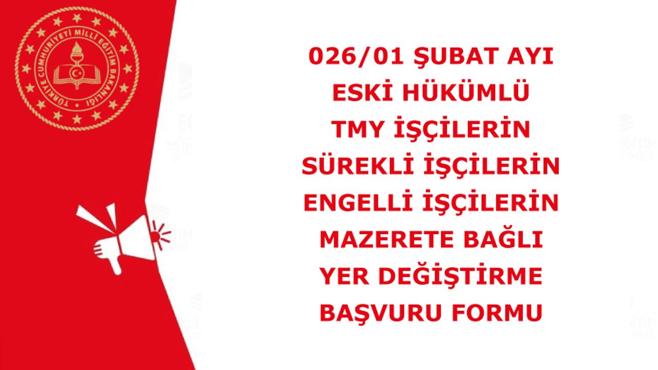 2026/01 Şubat Ayı Eski Hükümlü/TMY İşçilerin Mazerete Bağlı Yer Değiştirme Başvuru Formu