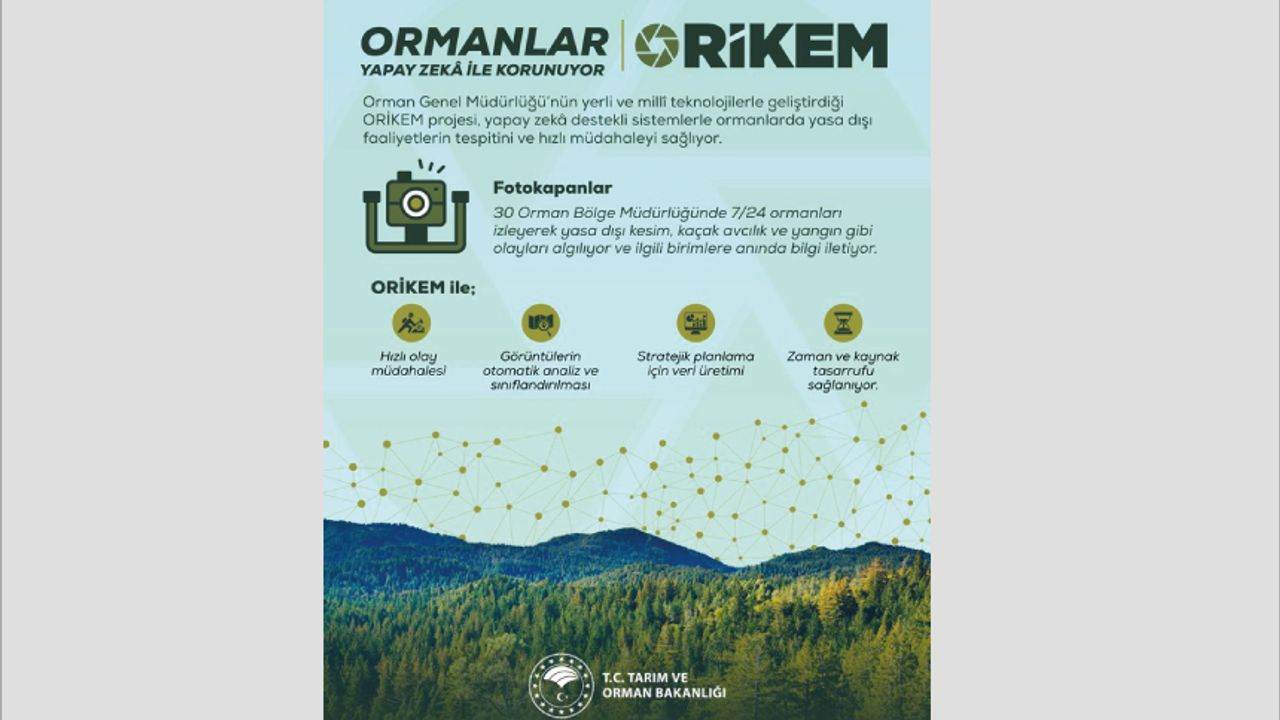 Ormanlar Dijital Gözlerle Korunuyor Yapay zekâ destekli ORİKEM sistemi ile; Kaçak avcılık, Yasa dışı kesim, Yangın riski anında tespit ediliyor. Teknolojiyle doğayı buluşturuyor, #YeşilVatan’ımızı koruyoruz.