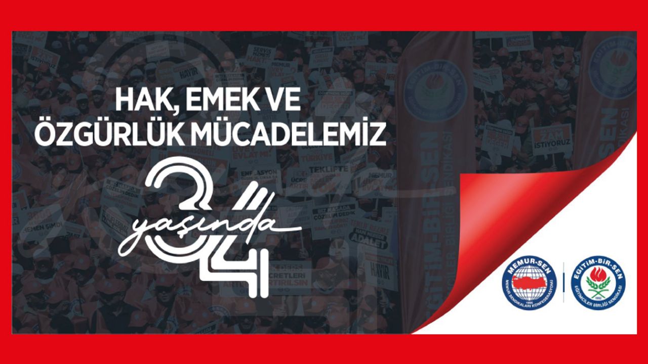 Onurlu ve asil mücadelelerle idrak ettiğimiz 34’üncü yılımız kutlu olsun. Eğitim-Bir-Sen’imiz var olsun.