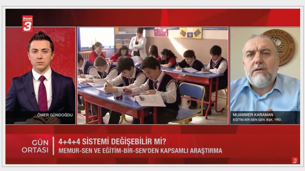 Karaman, Kanal 3 Televizyonu’nda katıldığı canlı yayında, “Türkiye’de 4+4+4 Zorunlu Eğitim Sistemine Yönelik Saha Araştırması”nın sonuçlarına ilişkin değerlendirmelerde bulundu.