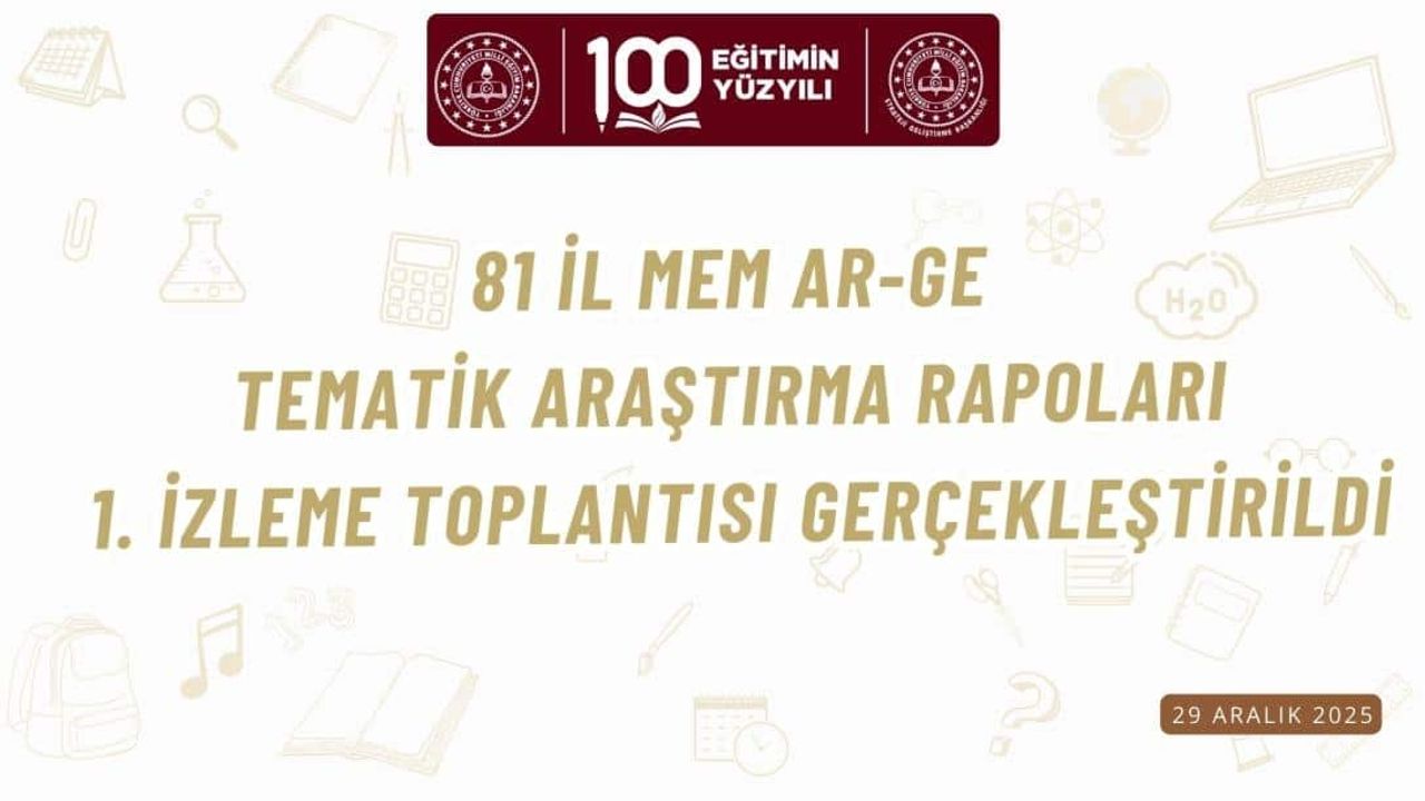Strateji Geliştirme Başkanlığı koordinasyonunda İl MEM AR-GE birimleri tarafından hazırlanmakta olan tematik araştırma raporlarına yönelik birinci izleme toplantısı 81 il millî eğitim müdürlüğü AR-GE birimlerinde görevli ilgili öğretmen ve yöneticilerin katılımlarıyla 29/12/2025 tarihinde gerçekleştirilmiştir. Söz konusu toplantı kapsamında, yürütülen araştırma raporlarının mevcut durumu ele alındı. Araştırma süreçlerinin izlenmesi, elde edilen verilerin değerlendirilmesi ve uygulamada karşılaşılan hususlara yönelik görüş alışverişinde bulunuldu. Ayrıca, raporların nitelik ve etki düzeyinin artırılmasına yönelik değerlendirmeler yapıldı.