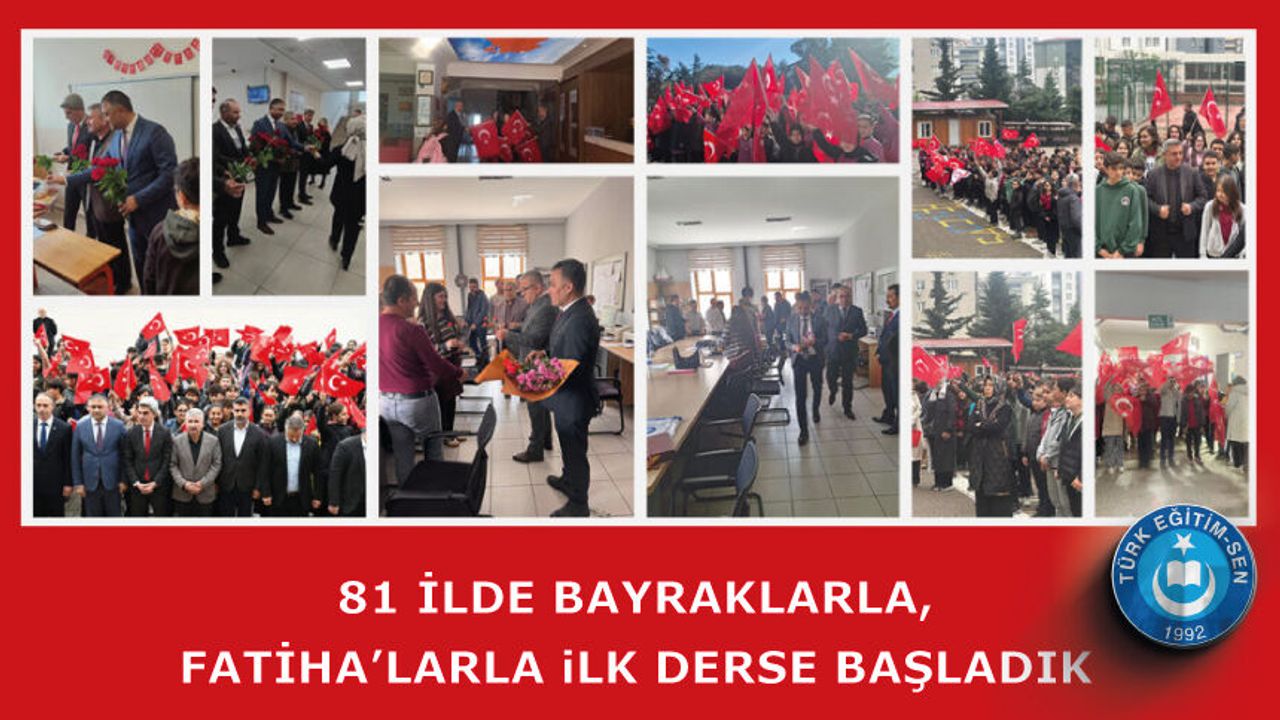 Okullar bizimdir, Öğrencilerimiz emanetimizdir. Öğretmenlerimiz, ellerinde bayraklarımız, dillerinde Fatihalarla bugün ilk derse başladılar.