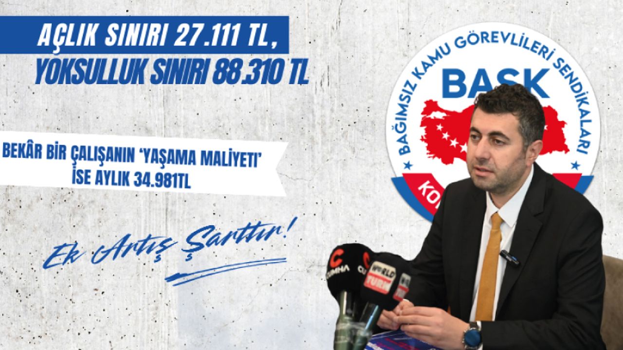 Bekâr bir çalışanın ‘yaşama maliyeti’ ise aylık 34.981 TL’ye yükseldi.