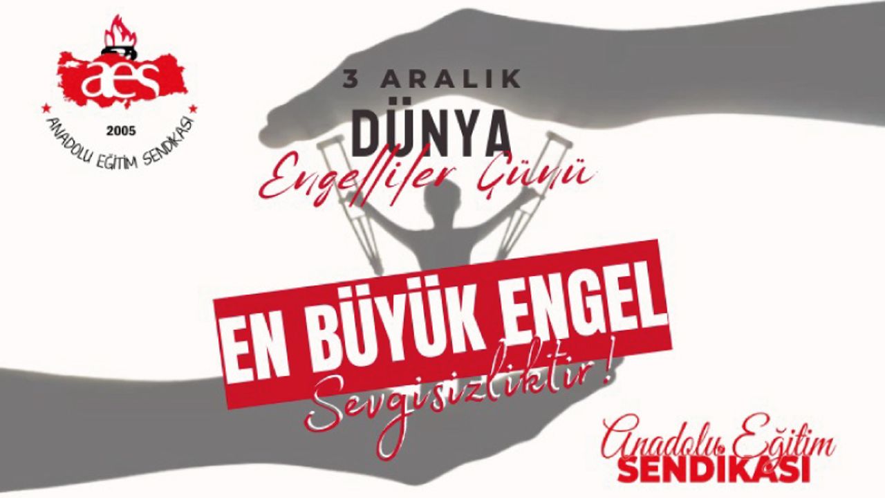 3 Aralık nedeniyle hatırlanan, yılın 364 günü YOK sayılan engelliler, bizim aile üyelerimiz ve değerli iş gücümüzdür. Onları yok sayarak hamaset içinde gün kutlayanları asli görevlerini yapmaya çağırıyoruz. Dileriz 3 Aralık Dünya Engelliler günü farkındalık yaratsın, engelli hakları en kısa zamanda iade edilsin, Engelli Öğretmenlerimiz bir an önce öğrencilerine kavuşsun.