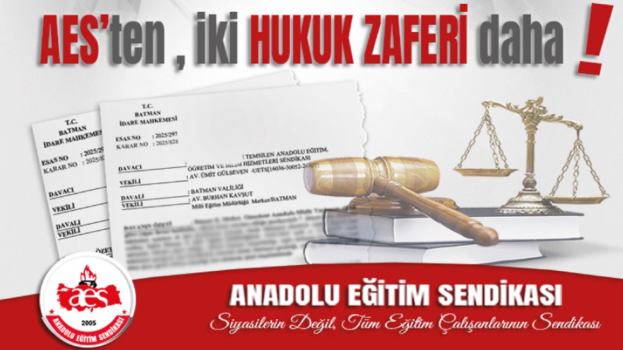 Anadolu Eğitim Sendikası dava kazanmaya devam ediyor. Batman ilimizde okul müdürü ve okul müdür yardımcısı olarak görev yapan üyelerimizin, yüksek lisans eğitimi aldıkları için, Toplu Sözleşme hükümleri doğrultusunda ek derslerini artırımlı almaları için idareye yaptıkları başvurular idare tarafından reddedilmişti. Bunun üzerine konuyu AES olarak yargıya taşımıştık.