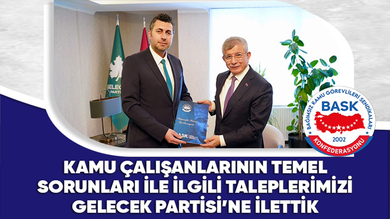 başta olmak üzere kamu çalışanlarının sorunlarını ilettiler. GELECEK Partisi Genel Başkanı Prof. Dr. Sayın Ahmet DAVUTOĞLU’na konfederasyonumuz adına ilgi ve alakaları için teşekkür ediyoruz.