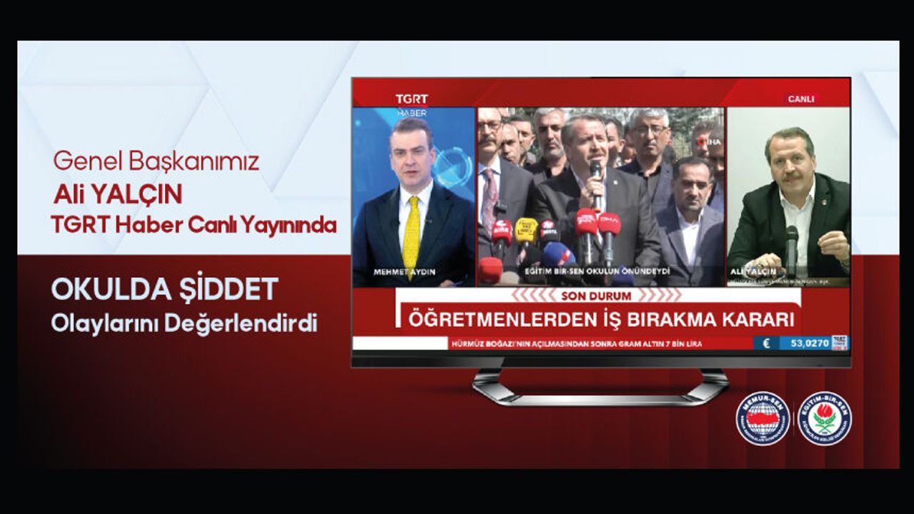 Genel Başkanımız Ali Yalçın, TGRT Haber’de canlı yayınlanan “Akşam Gündemi” programında, Şanlıurfa ve Kahramanmaraş’ta okullara yönelik saldırılarla ilgili soruları yanıtladı: