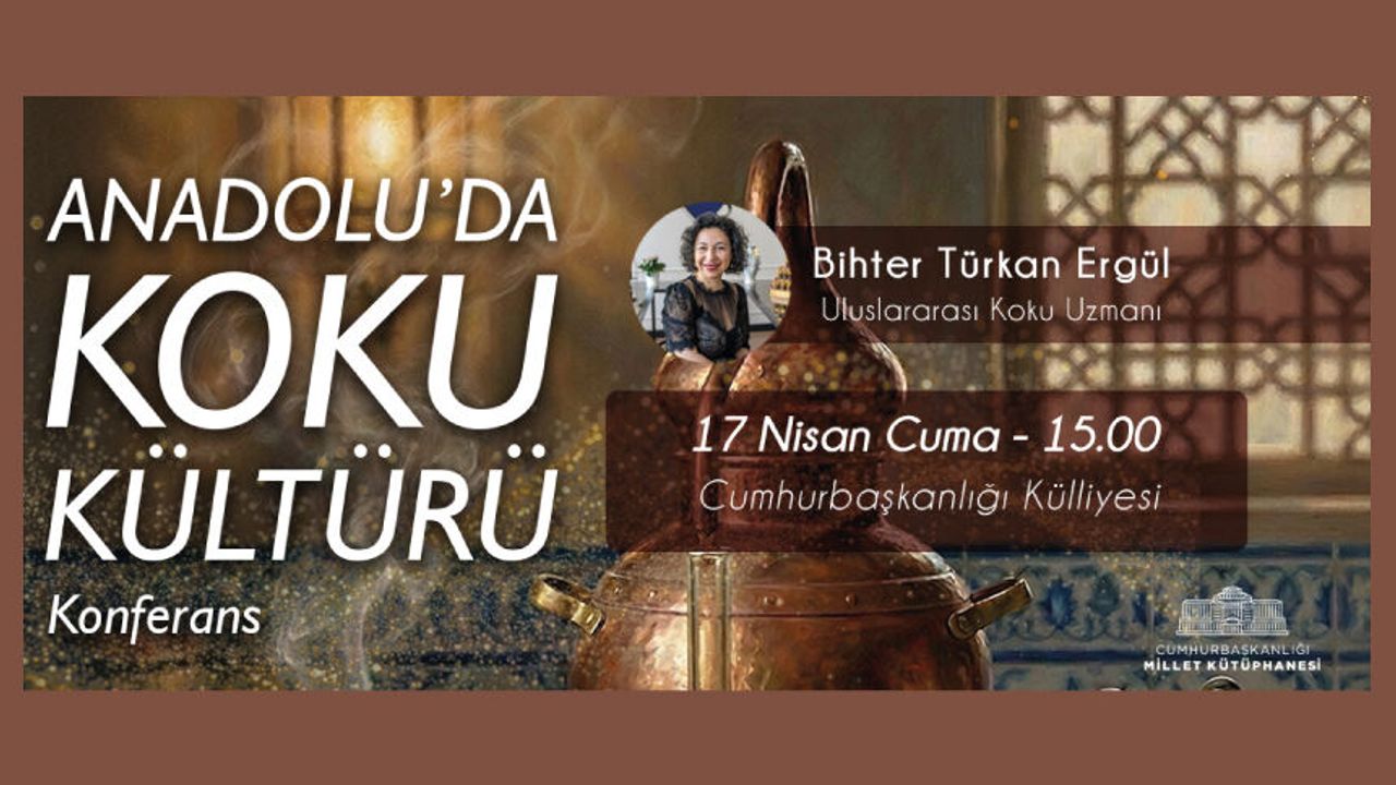 Cumhurbaşkanlığı Millet Kütüphanesi Konferans Salonu’nda, Uluslararası Koku Uzmanı Bihter Türkan Ergül’ün katılımıyla “Anadolu’da Koku Kültürü” konulu konferans gerçekleştirilecektir.