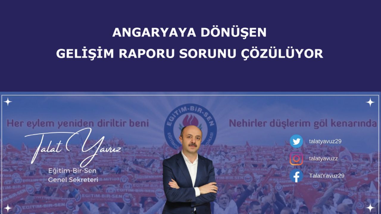 Son bir haftadır eğitim gündemini meşgul eden ve angaryaya dönüştürülen Gelişim Raporu problemine ilişkin yaptığımız görüşmede Bakanlık, duyarlı davranacağını ifade etmiş, konunun çözüleceğini tarafımızla paylaşmıştır. Süreçe ilişkin takibimiz devam ediyor.