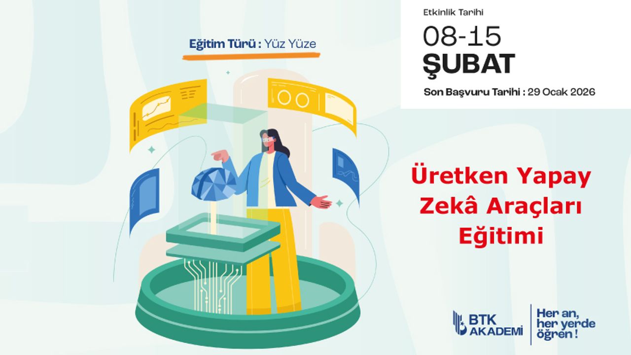 Antalya – Üretken Yapay Zekâ Araçları Eğitimi başvuruları açıldı. Güncel içerikler ve uygulamalı eğitimlerle yapay zekâ ve büyük veri dünyasına güçlü bir adım at. Başvuru ve detaylar için: http://btkakademi.gov.tr