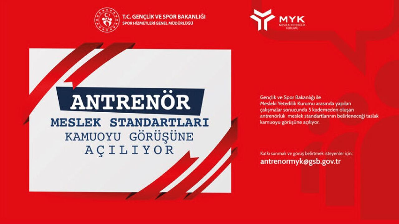 Antrenörlük Ulusal Meslek Standartları taslağının nitelikli ve kapsayıcı olması adına tüm paydaşların değerli görüşlerine ihtiyaç duyulmaktadır. Bu doğrultuda, söz konusu taslak konuyla ilgili tüm kurum ve kuruluşlar ile kamuoyunun görüşlerine sunulmuştur. Yapılan çalışmaları içeren Taslak Antrenörlük (I.,II.,III.,IV. ve V. Kademe) Ulusal Meslek Standartlarına ilişkin dosyalar Ek-1,2,3,4,5’te yer almaktadır. Görüş ve önerileri sunmak, katkı sağlamak isteyenlerin (Ek-6)’da bulunan görüş öneri formunu doldurarak 27.04.2026 tarihi mesai bitimine kadar [email protected] e-posta adresinden iletilmesi gerekmektedir.