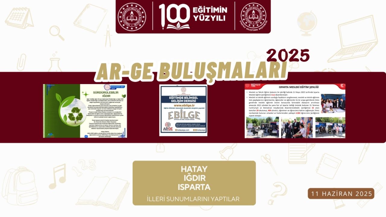 81 İl Milli Eğitim Müdürlüğü "AR-GE Buluşmaları 2025" in on üçüncüsü Hatay, Iğdır ve Isparta illerimizin sunumlarıyla gerçekleştirildi.