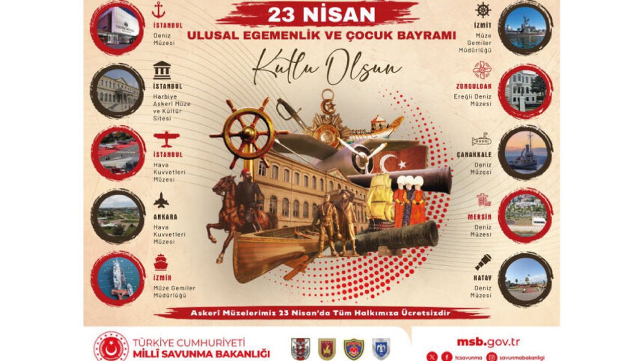 23 Nisan Ulusal Egemenlik ve Çocuk Bayramı’nda askerî müzeler tüm halkımızın ziyaretine ücretsiz açık olacaktır. Şanlı mazimizin sesini bugün de duymak isteyen tüm vatandaşlarımızı müzelerimize davet ediyoruz. #23NisanKutluOlsun #MillîSavunmaBakanlığı