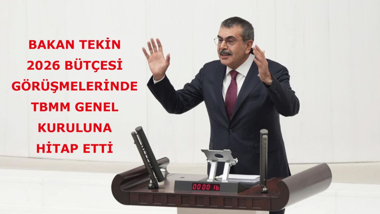 Bakan Tekin, TBMM Genel Kurulunda, Bakanlığının 2026 Yılı Bütçesi'ne ilişkin sunumunda, eğitimin tüm insanlığı kuşatan bir kapsamının bulunduğunu anlattı.