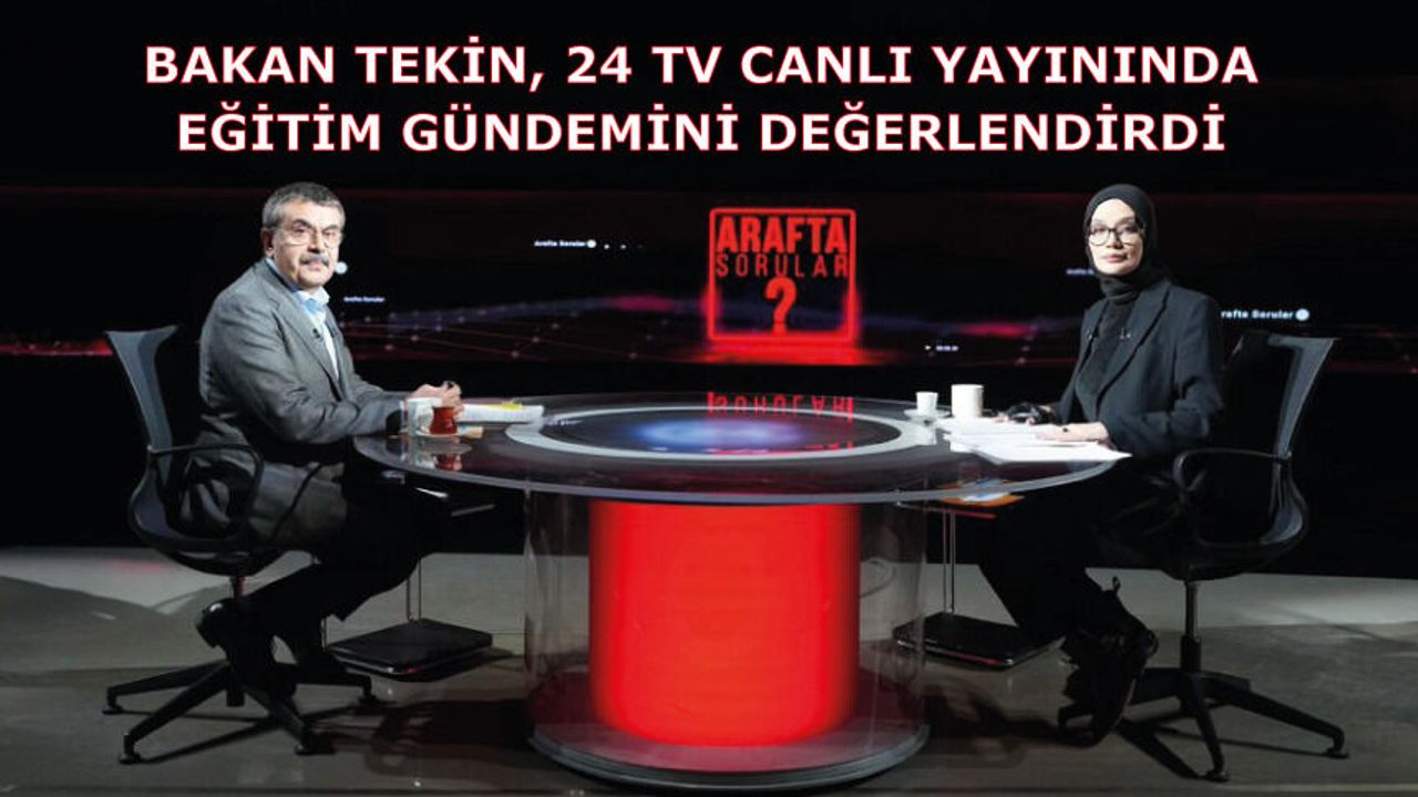Millî Eğitim Bakanı Yusuf Tekin, 24 TV'de "Arafta Sorular" programında gündeme ilişkin soruları yanıtladı.