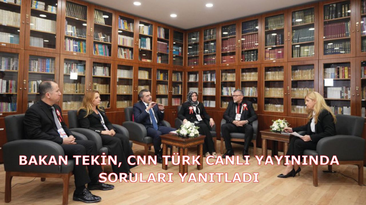 Bakan Tekin, 24 Kasım Öğretmenler Günü kutlamaları kapsamında Ankara'ya davet edilen Karabük'ten Türk Dili ve Edebiyatı Öğretmeni Ramazan Şen, Muğla'dan Türkçe Öğretmeni Seda Ülker, Gümüşhane'den Görsel Sanatlar Öğretmeni Mehtap Öztürk ve Ordu'dan Okul Müdürü Turan Aksoy ile CNN Türk canlı yayınına katılarak soruları yanıtladı.