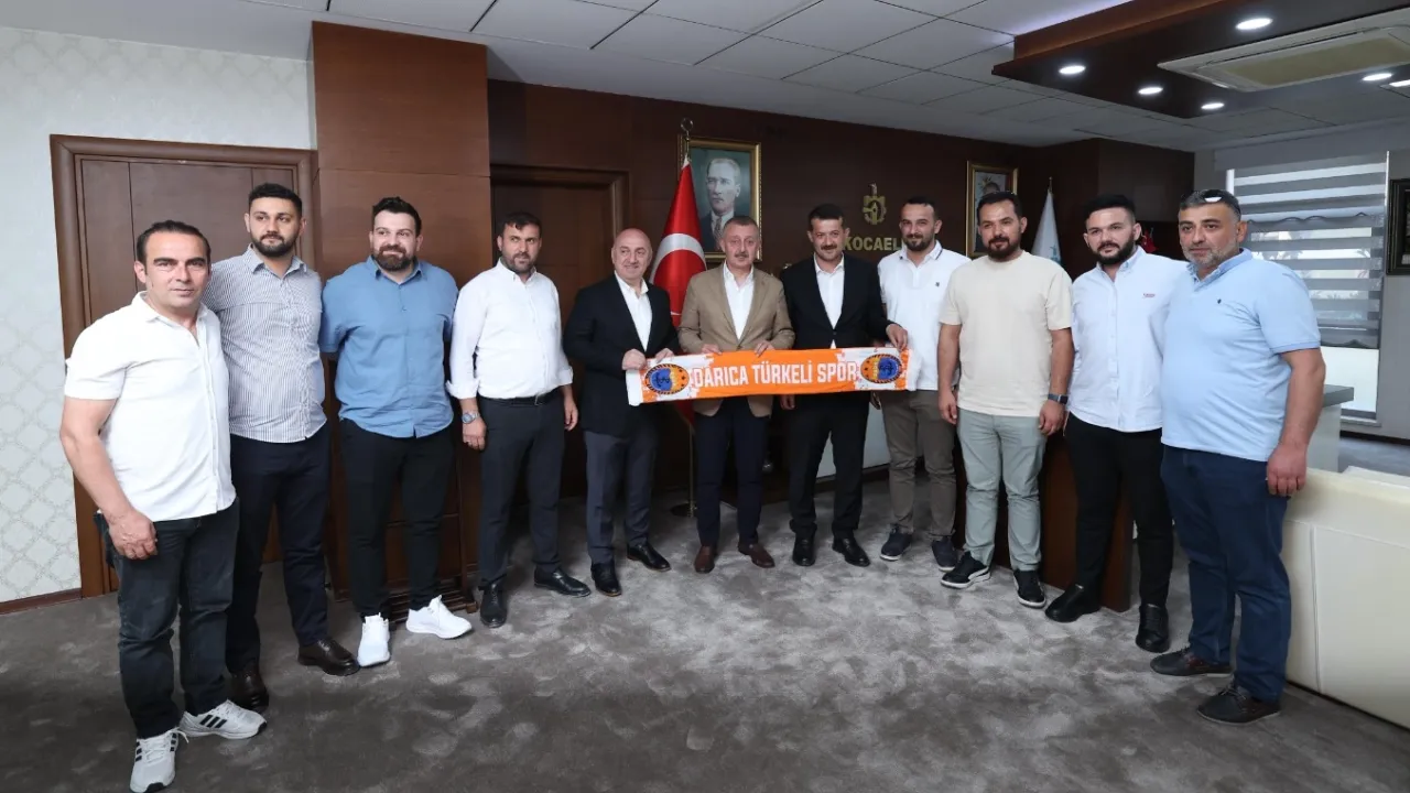 Geçtiğimiz sezon şampiyon olarak Bölgesel Amatör Lig’e (BAL) yükselen Darıca Türkeli Spor Kulübü Başkanı Ferhat Yılmaz ve yönetim kurulu, Kocaeli Büyükşehir Belediye Başkanı Tahir Büyükakın’ı ziyaret etti.KOCAELİ (İGFA) - Gebze’de misafirlerini ağırlayan Kocaeli Büyükşehir Belediye Başkanı Tahir Büyükakın, Darıca Türkeli Spor Kulübü Başkanı Ferhat Yılmaz ve yönetimini kutladı.