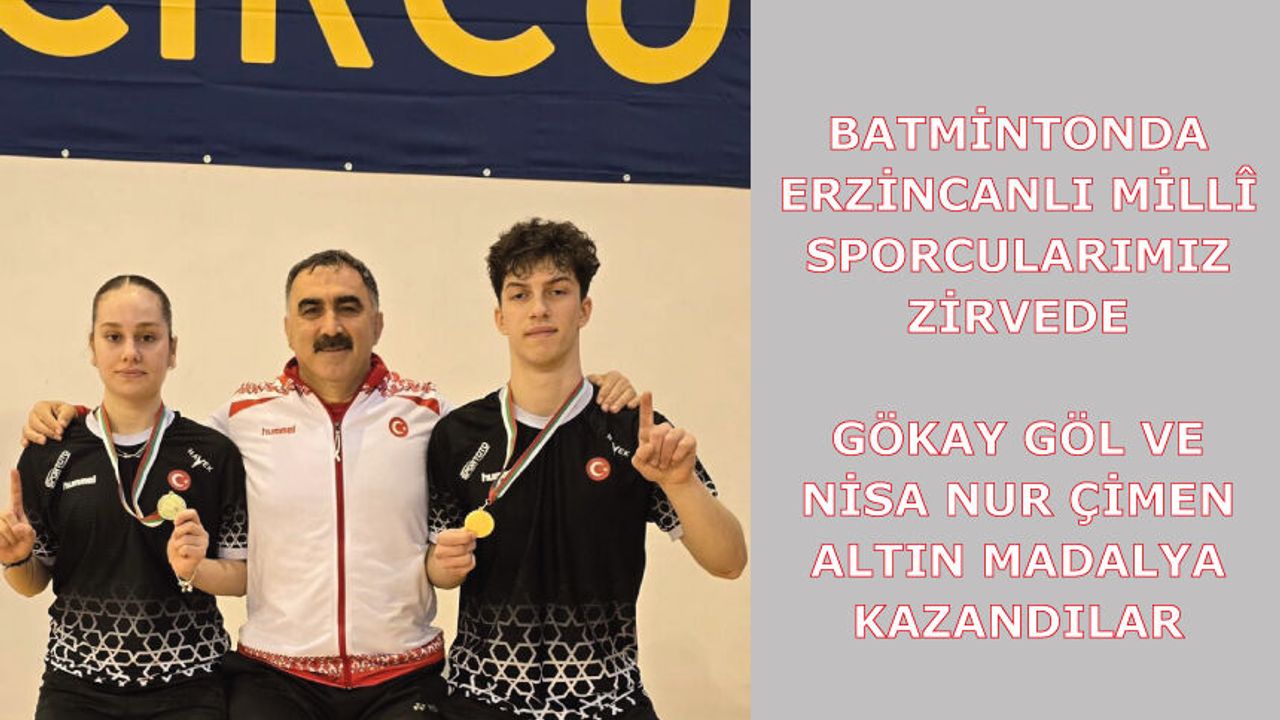 Batmintonda Erzincanlı Millî Sporcularımız Zirvede Her Daim gurur duyduğumuz gençlerimizden muhteşem bir haber aldık! Bulgaristan’da düzenlenen Bulgarian Junior U19 International Badminton turnuvasında, Erzincanlı evlatlarımız ay-yıldızlı bayrağımızı en yüksekte dalgalandırarak göğsümüzü kabarttı. Sporcularımızdan: Gökay Göl ve Nisa Nur Çimen – Karışık Çiftler'de Altın Madalya