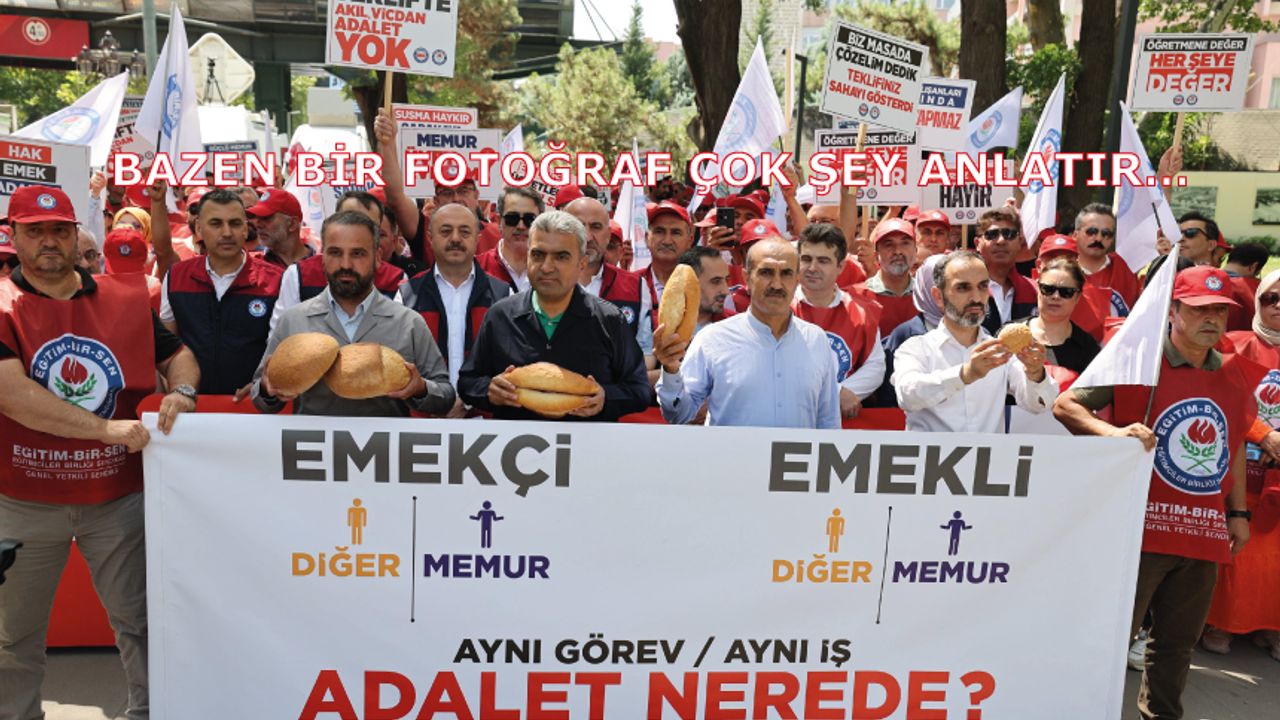 GELİRDE ADALET ÜCRETTE DENGE TALEBİNİ KARŞILAMAYAN KAMU İŞVEREN TEKLİFİ HAYAL KIRIKLIĞI OLUŞTURDU Kamuda aynı kurumda, aynı işi yapan çalışanlar ile emekliler arasındaki gelir adaletsizliğini ve ücret dengesizliğini göstermek için alanlardaydık. “Aynı görev, aynı iş, adalet nerede?” pankartımızın önünde, kamuda dört farklı ücreti simgeleyen dört farklı boydaki ekmeklerle bu adaletsizliği gösterdik. #YetersizTeklifeHayır #TopluSözleşme #HakEmekAdalet