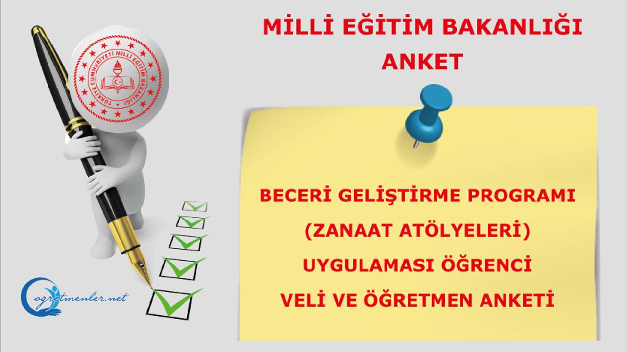 Beceri Geliştirme Programı (Zanaat Atölyeleri) Uygulaması Öğretmen Anketine katılmak için tıklayınız.