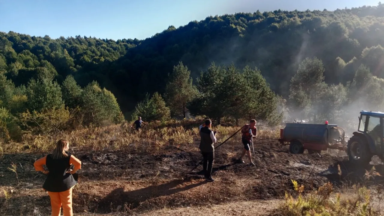 Bilecik’in Pazaryeri ilçesine bağlı Bozcaarmut köyü Katrançukuru mevkiinde çalılık alanda başlayan yangın, itfaiye ve orman ekiplerinin cansiperane mücadelesi ile kısa sürede kontrol altına alındı.Pazaryeri Gündem / BİLECİK (İGFA) - Bilecik Pazaryeri'nde rüzgârın da etkisiyle büyüme riski taşıyan alevler, çam ağaçlarının bulunduğu ormanlık bölgeye yönelmeden önce vatandaşlar ve Pazaryeri Belediyesi itfaiye ekipleri, Orman Genel Müdürlüğü ekipleri tarafından adeta zamanla yarışılarak söndürüldü.