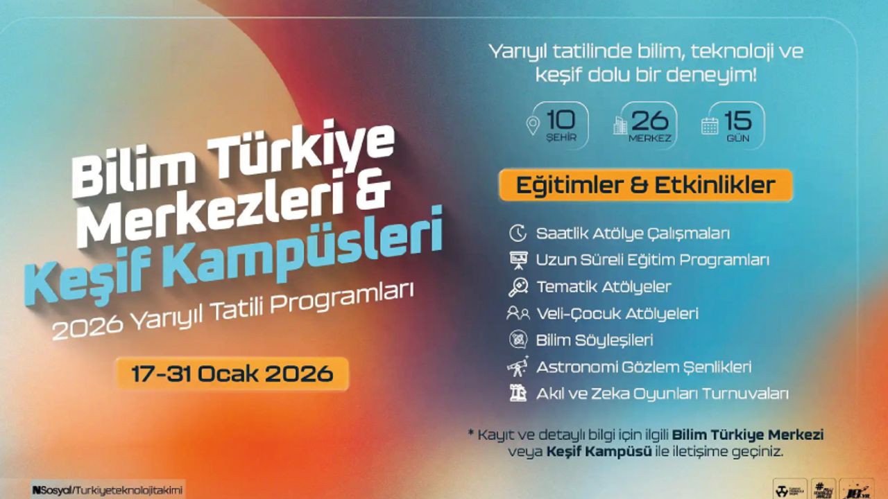 Bilim Türkiye Merkezleri ve Keşif Kampüsleri, 2026 yarıyıl tatili kapsamında çocuklar ve gençlere yönelik özel olarak hazırlanan eğitim ve etkinlik programlarını hayata geçiriyor. 17–31 Ocak tarihleri arasında gerçekleştirilecek programlarla, öğrencilerin tatil dönemini verimli, eğitici ve ilham verici bir şekilde geçirmeleri hedefleniyor.