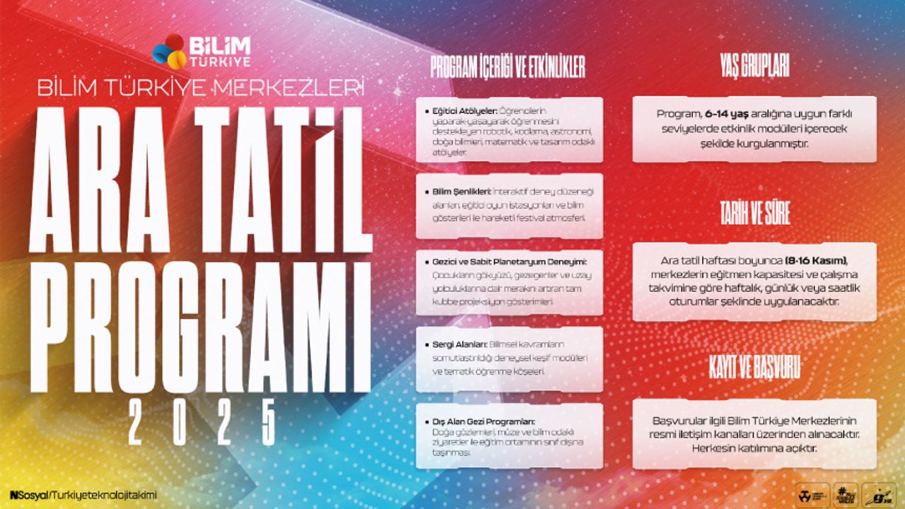 Ara tatilde bilimin heyecanını yaşamak isteyen tüm öğrenciler, başvurularını ilgili Bilim Türkiye Merkezlerinin resmi iletişim kanalları üzerinden yapabilir.