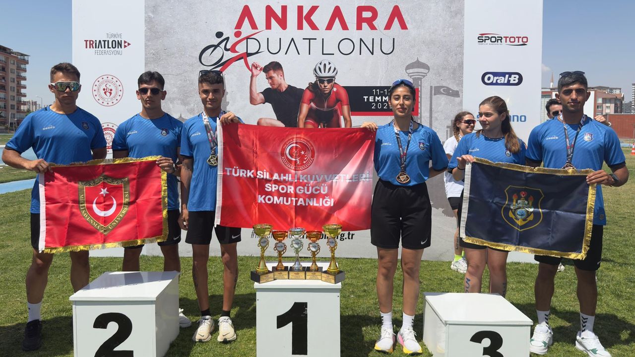 MSÜ Deniz Harp Okulu Triatlon Takımı, Türkiye Triatlon Federasyonu tarafından 11-12 Temmuz 2025 tarihlerinde Ankara’da düzenlenen Ankara Duatlonu Türkiye Kupası (Final) müsabakasına, TSK Spor Gücü adına 7 öğrenci ve 1 antrenör ile katıldı. Müsabakalar sonucunda MSÜ Deniz Harp Okulu öğrencimiz, yaş grupları genel sıralamasında 128 sporcu arasında birinci oldu. 2025 yılı boyunca Konya, İzmir ve Ankara’da üç etapta düzenlenen duatlon müsabakalarının genel puanlaması sonucunda ise; 20-24 yaş kategorisinde bir öğrencimiz Türkiye şampiyonluğu, iki öğrencimiz ise üçüncülük madalyası kazandı. Sporcularımızı tebrik eder, başarılarının devamını dileriz.
