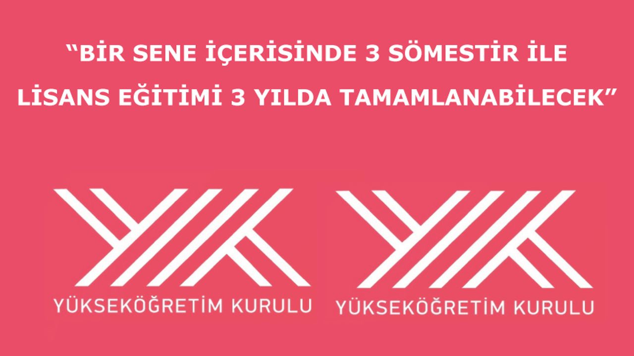 “2547 sayılı Kanun’un 44. maddesi bize üçüncü bir dönemi ihdas etme yetkisi veriyor. Bu alanda çalışmaya başladık. Bir sene içerisinde 3 sömestir mantığı ile. 14 haftadır bir sömestir. Bu 14 haftayı biraz daha kısaltarak ama öğrencinin alacağı kredileri, yapacağı projeleri, çalışmaları kısaltmadan daha kompakt şekilde programları reorganize ediyoruz. Eylülde başlayıp temmuzda bitecek şekilde. Öğrenciler yine 240 AKTS ile mezun olacaklar. Yine 8 sömestir eğitim görecekler ama o 8 sömestiri 3 yılda tamamlayabilecekler.”