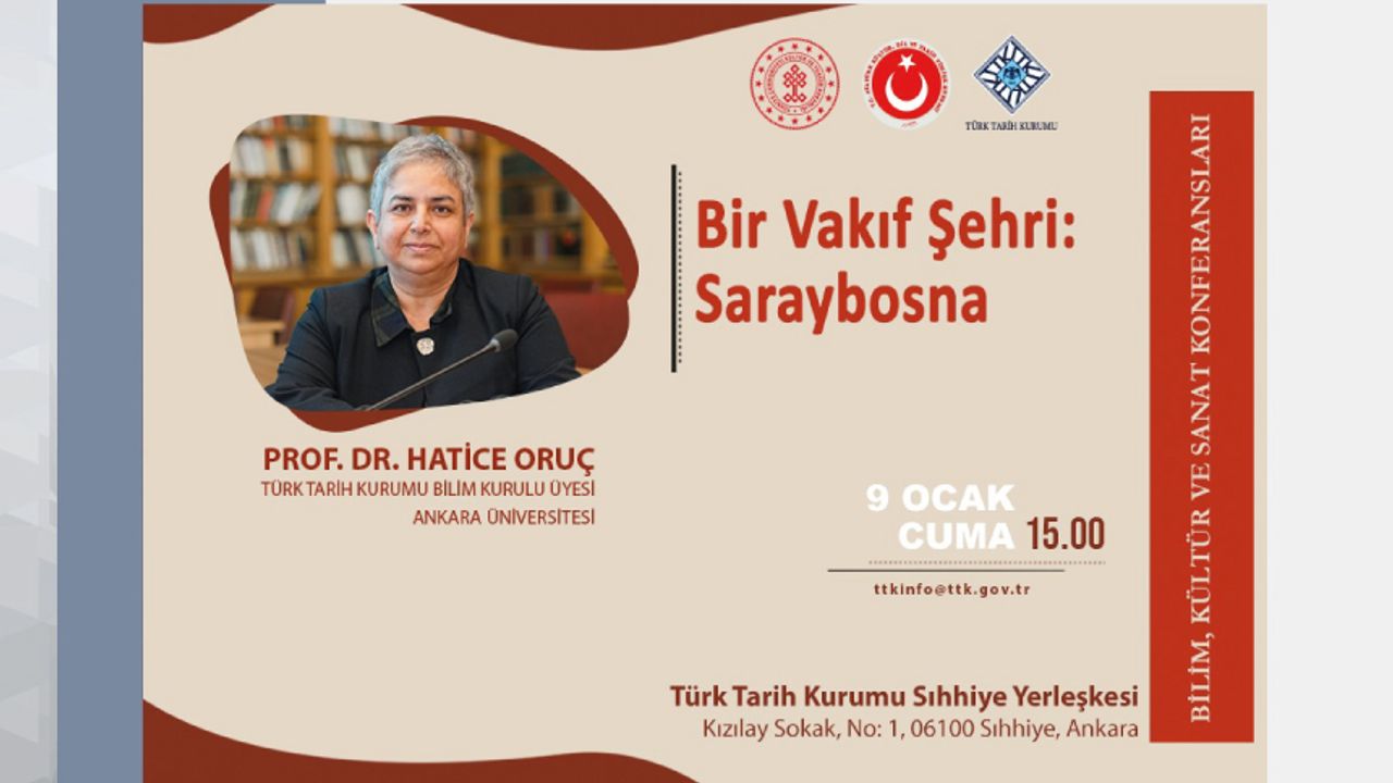 Kurumumuz tarafından düzenlenen “Bilim, Kültür ve Sanat Konferansları” serisi kapsamında Prof. Dr. Hatice Oruç’un 9 Ocak Cuma günü vereceği “Bir Vakıf Şehri: Saraybosna” konferansına davetlisiniz.