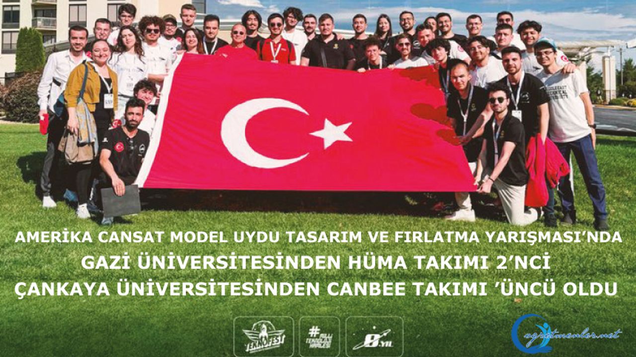 Amerika’da düzenlenen CANSAT Model Uydu Tasarım ve Fırlatma Yarışması’nda Gazi Üniversitesinden Hüma Takımı 2’nci, Çankaya Üniversitesinden Canbee Takımı 4’üncü oldu. Yarışmada ülkemizi temsil eden #TEKNOFEST takımlarımızı tebrik eder, başarılarının devamını dileriz!