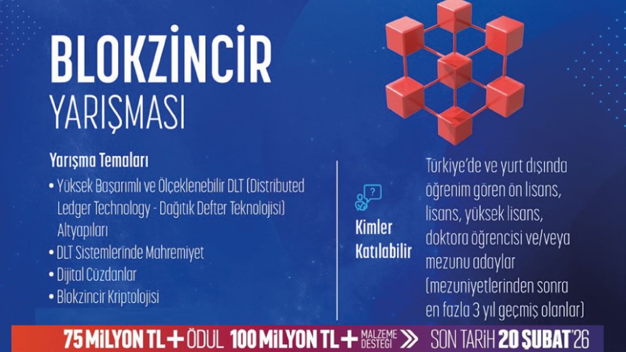 Son başvuru tarihi: 20 Şubat 2026 Detaylar: https://teknofest.org/tr/yarismalar/blokzincir-yarismasi/