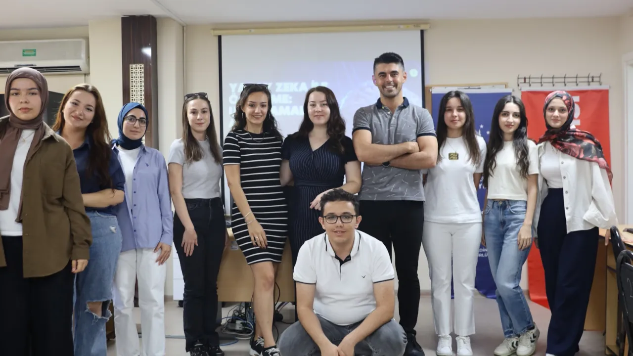 ‘Yapay zeka ile öğrenme: Uygulamalı atölye eğitiminde ise teknolojik gelişmelerin ışığında hayatın birçok alanını etkileyen yapay zeka kullanımı ve yapay zeka uygulamaları ele alındı. Dr. Yasemin Yeşilbaş Özenç tarafından yürütülen eğitimde, sohbet robotları, metin yazma ve kaynak, literatür taraması, metin özetleme, çeviri ve dilbilgisi, sosyal medya içerik üretimi gibi konularda aktif olarak kullanılan yapay zeka uygulamaları örnekler çerçevesinde ele alındı.