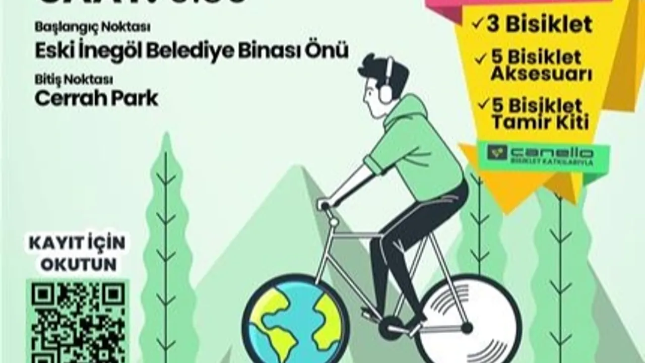 Bursa'da İnegöl Belediyesi Dünya Çevre Günü etkinlikleri kapsamında “Ne kadar az karbon, o kadar temiz hava” sloganıyla bisiklet turu düzenliyor. Etkinlik kapsamında yapılacak çekilişle 3 kişiye bisiklet, 5 kişiye bisiklet aksesuarı ve 5 kişiye de bisiklet tamir kiti hediye edilecek.BURSA (İGFA) - İnegöl Belediyesi, 5 Haziran Dünya Çevre Gününü 1 hafta boyunca yapılacak çeşitli etkinlik ve programlarla kutlayacak.