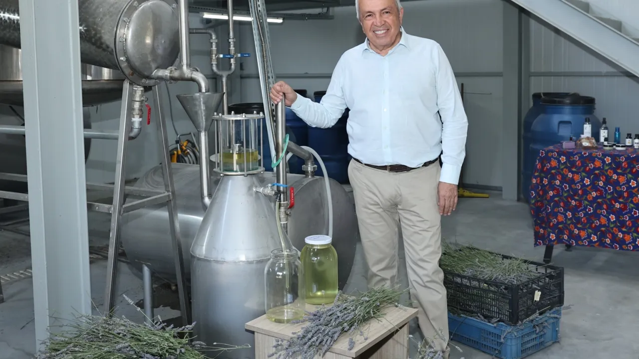 Hasadın ardından Nilüfer Tıbbi ve Aromatik Bitki İşleme Tesisi’ni de ziyaret eden Başkan Şadi Özdemir, lavantanın distilasyon süreci ve elde edilen ham maddelerden üretilen ürünler hakkında yetkililerden bilgi aldı.